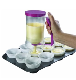 Ahhhh, depois que cupcakes viraram febres no Brasil, todo mundo quer fazer ! Lá no grupo mesmo sempre rola umas receitas muito bacanas de cupcakes e foi então pensando nestas mães, aventureiras na cozinha, que eu resolvi dar a dica do Batter Dispenser. Lendo assim o nome e olhando a foto até parece mais um produto das Organizações Tabajara, né? hahah ! Mas ele é fantástico meninas, eu uso o meu DEMAIS e garanto para vocês que depois que comprei o meu dispenser, faço cupcakes com mais frequência.Claro que é muito simples usar uma colher para encher as forminhas, mas eu particularmente fazia muita lambança :) Fica a dica então para as mamães, além de baratinho você pode usá-lo também em outras receitas como pancakes e waffles !!! Inclusive para as mamães de crianças maiores, acho super colocar esta criançada para ajudar nas receitas, e porque não enchendo forminhas???